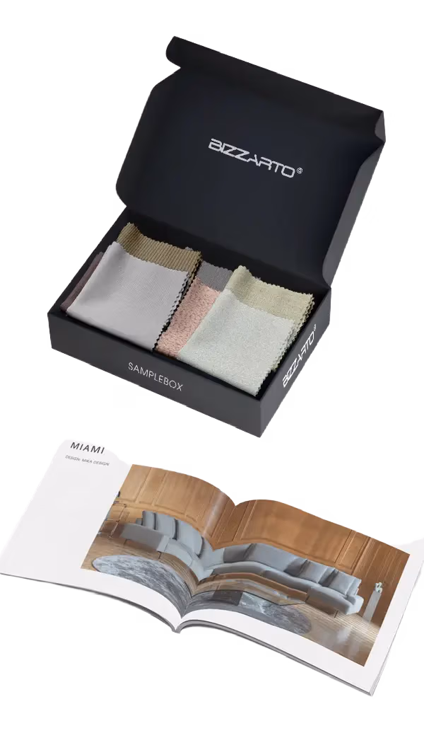 Plan een videomeeting via Whatsapp met onze woonadviseurs voor het samenstellen van uw Acapulco bank en het kiezen van de bekleding. U ontvangt vooraf een sample set met samples van stoffen die u wilt zien en voelen. De woonadviseur zal u ook persoonlijk begeleiden tijdens uw design arrangement , waar u alles nog kunt aanpassen. Ook dat is Bizzarto.