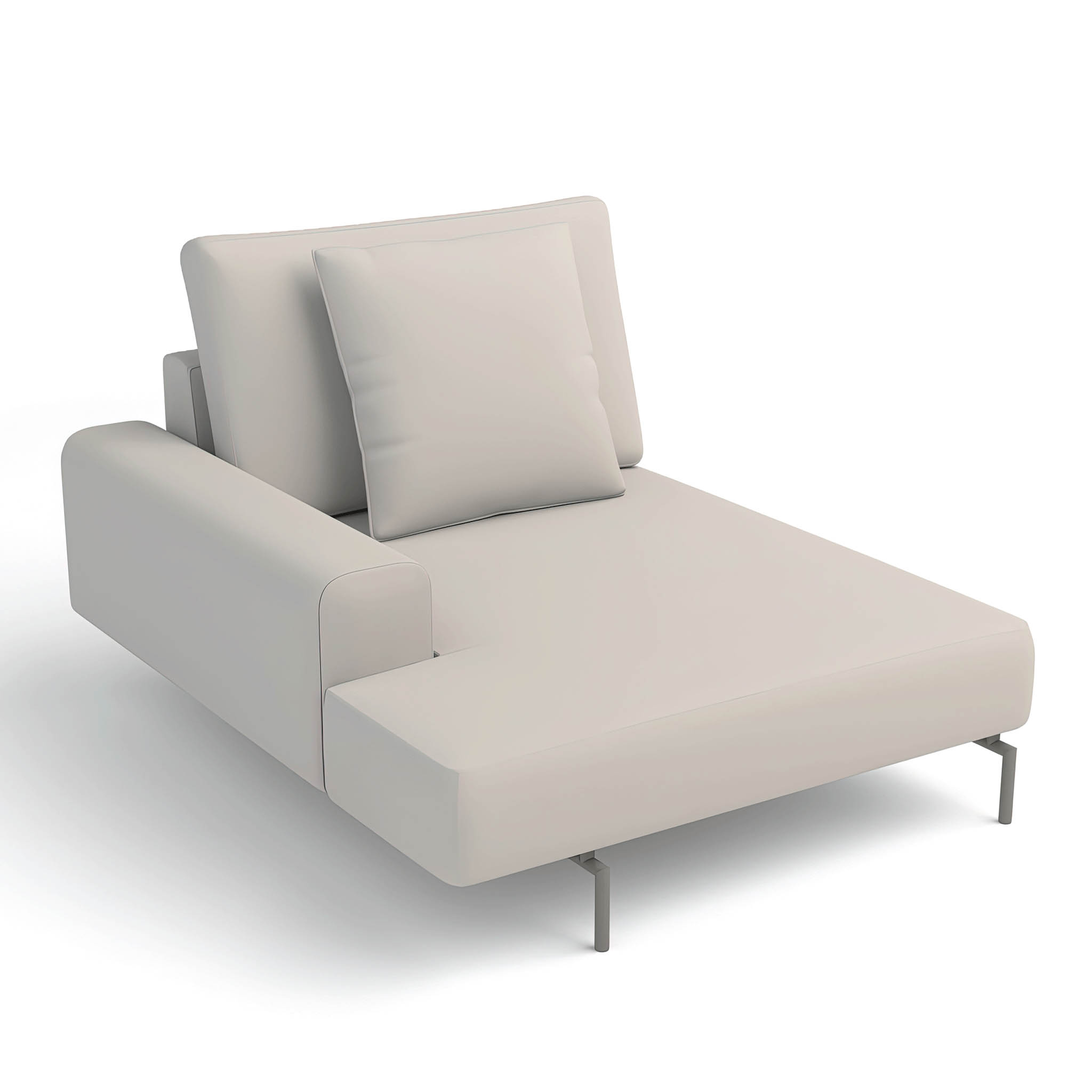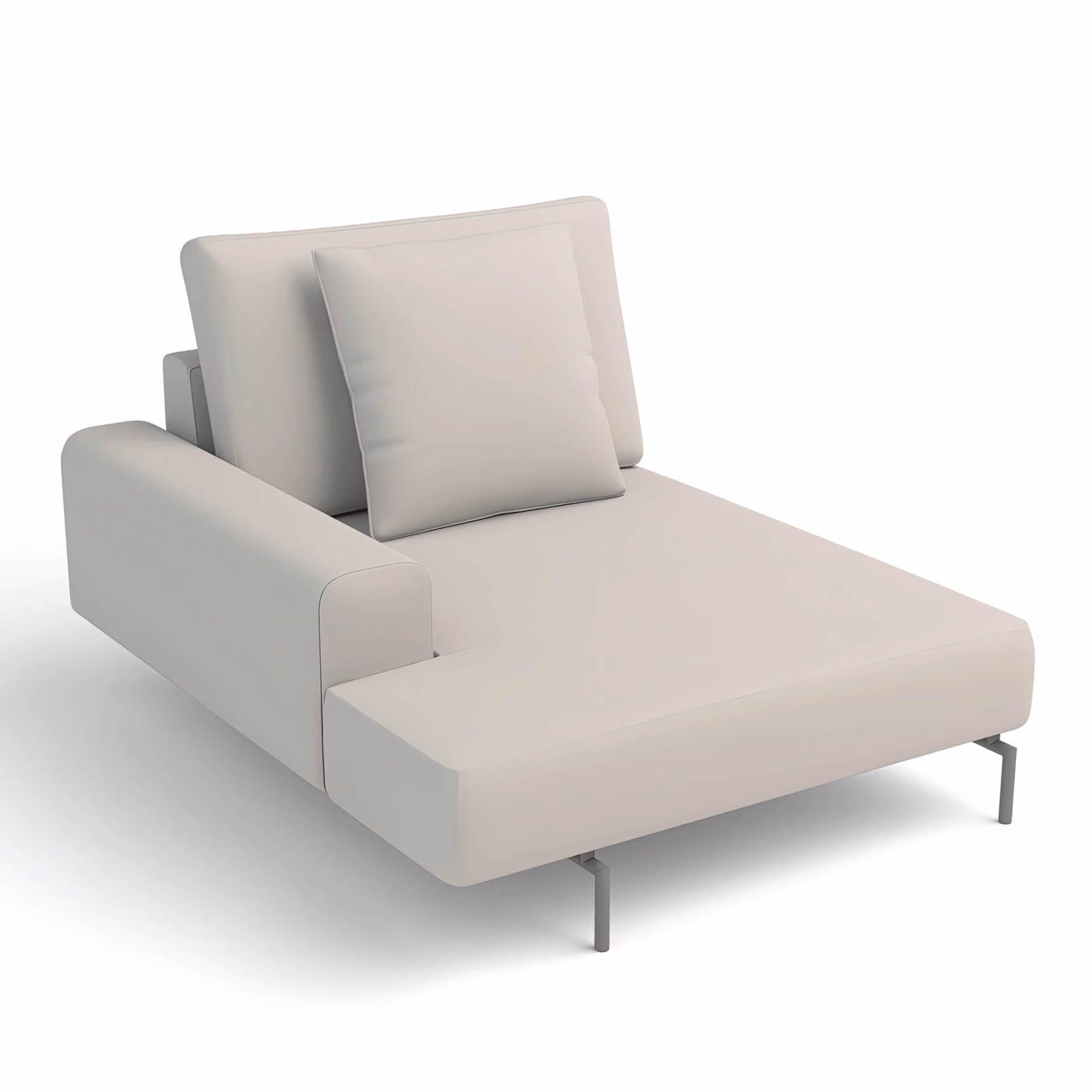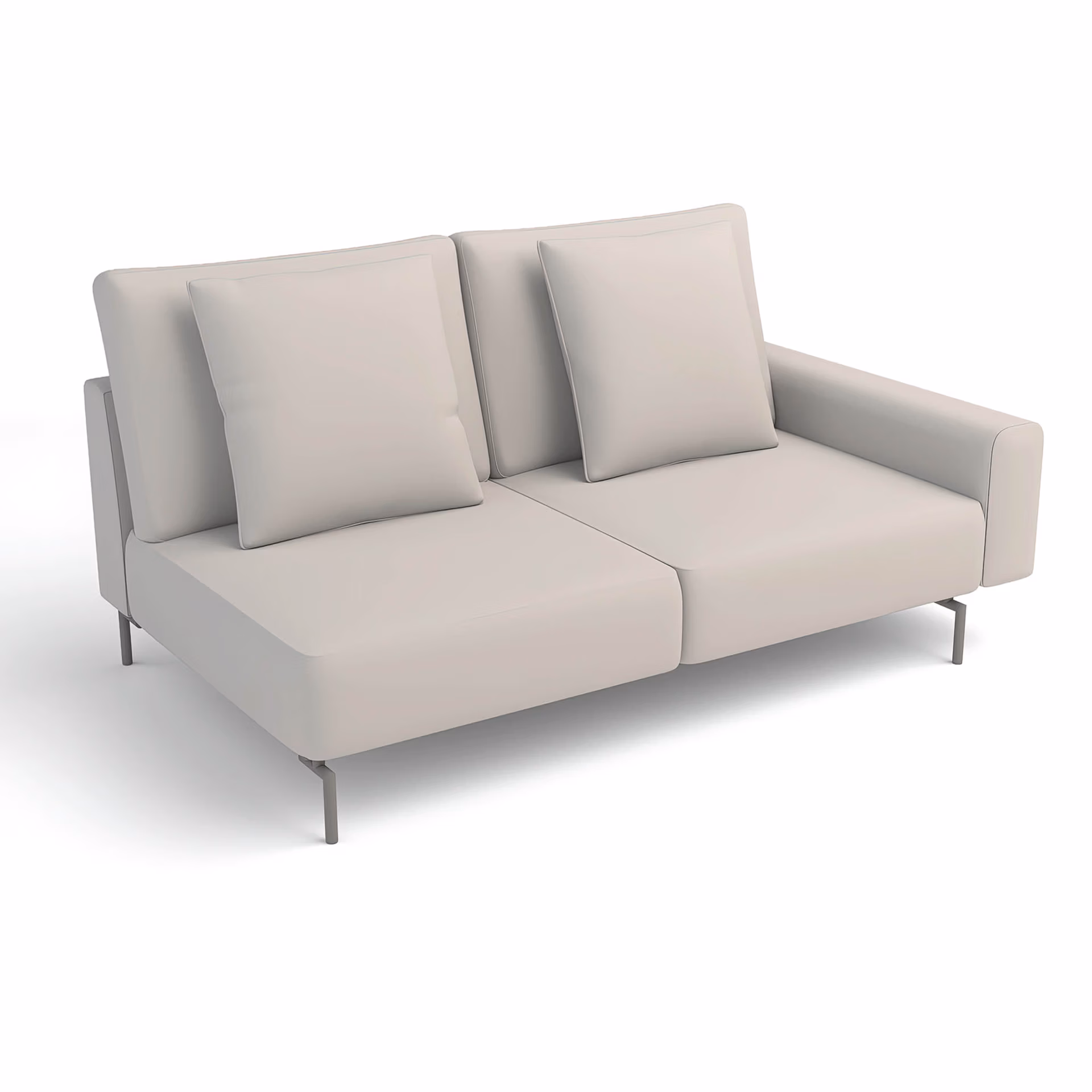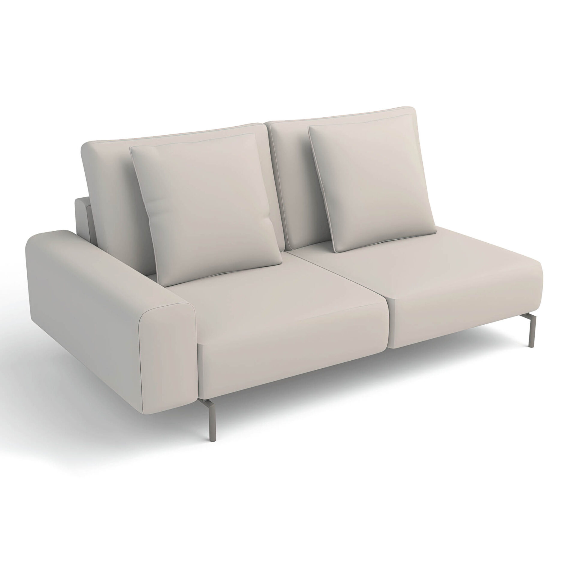 De brede zijden van de bank zijn verplaatsbaar. U kunt ze verplaatsen of zelfs verwijderen. Ze worden dan poefs – een extra zitplaats of comfortabele voetensteunen. U kunt elke configuratie maken met de modules van de Acapulco collectie voor elke vorm en formaat Ook in een versie zonder zijkanten is mogelijk. U kunt de opstelling van de elementen afstemmen op uw interieur en gezin.