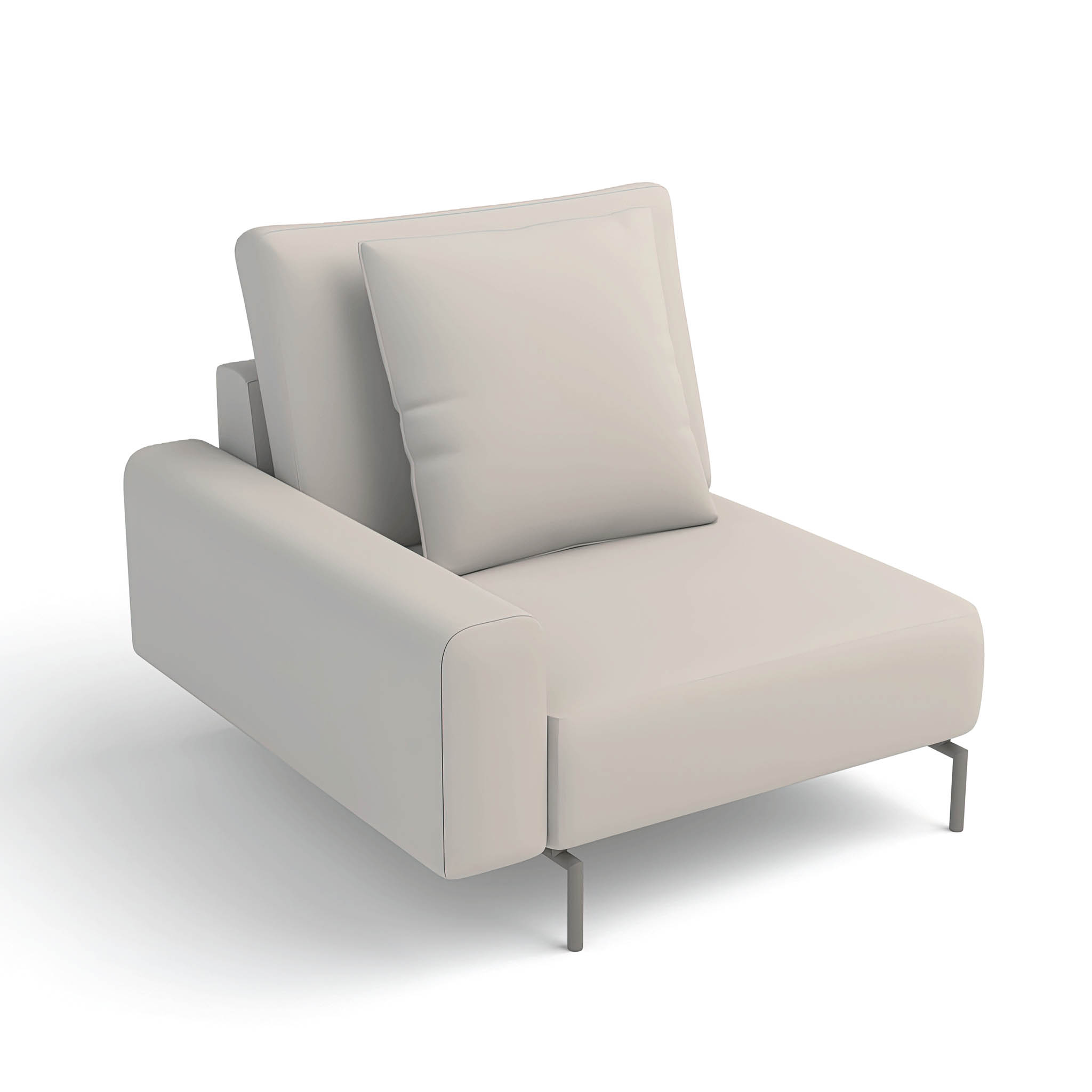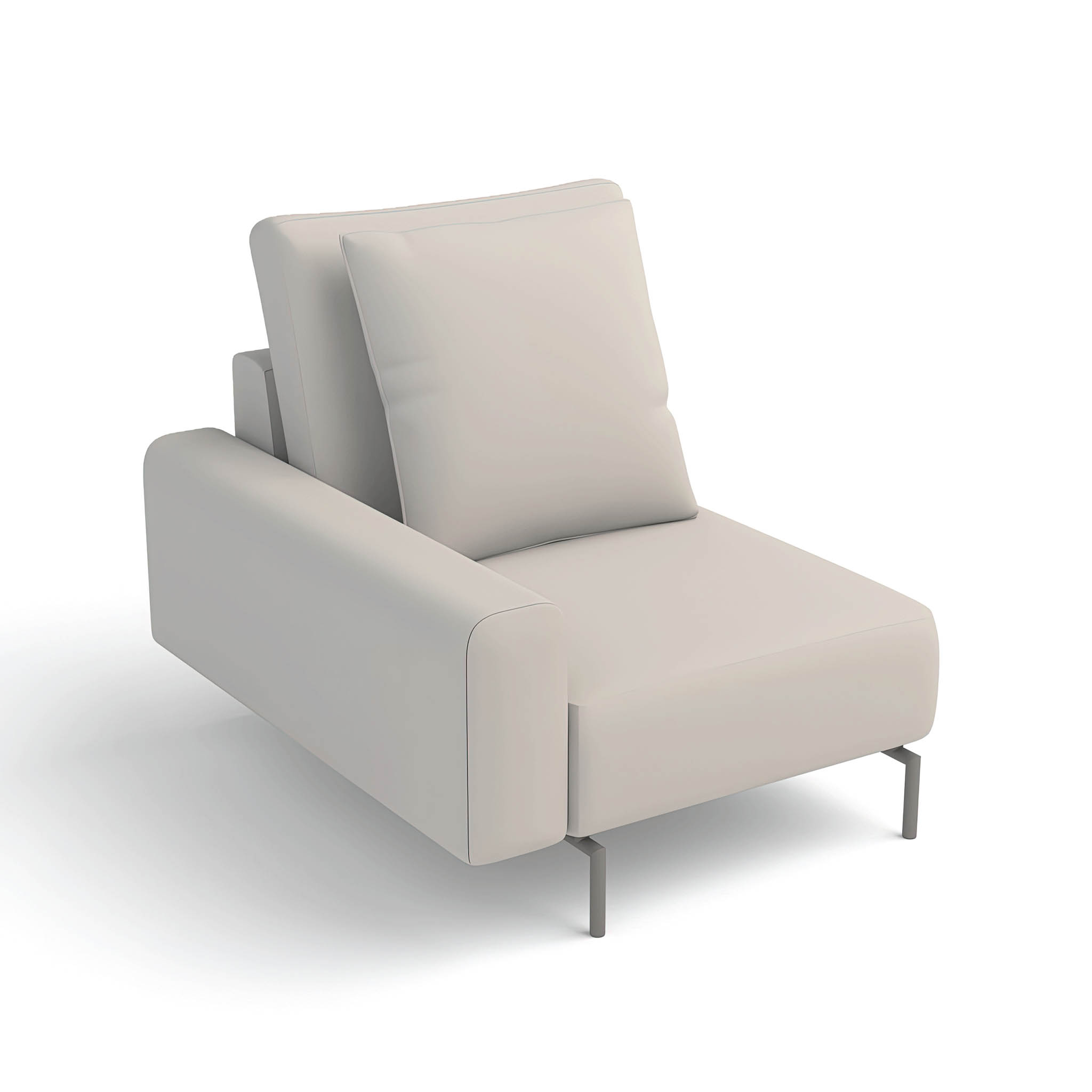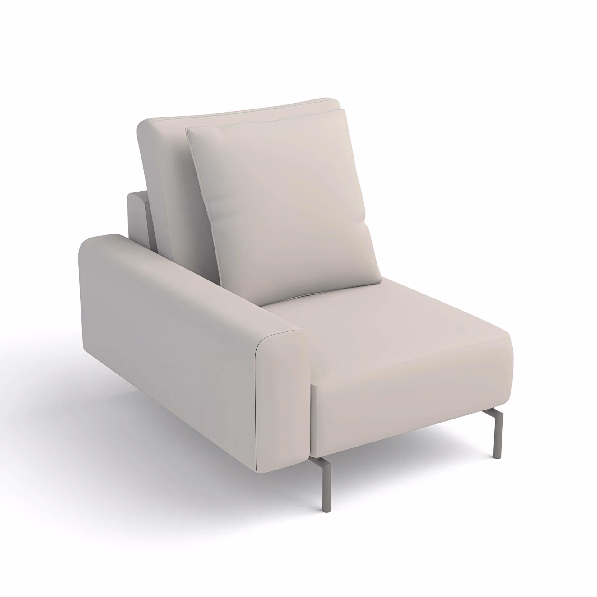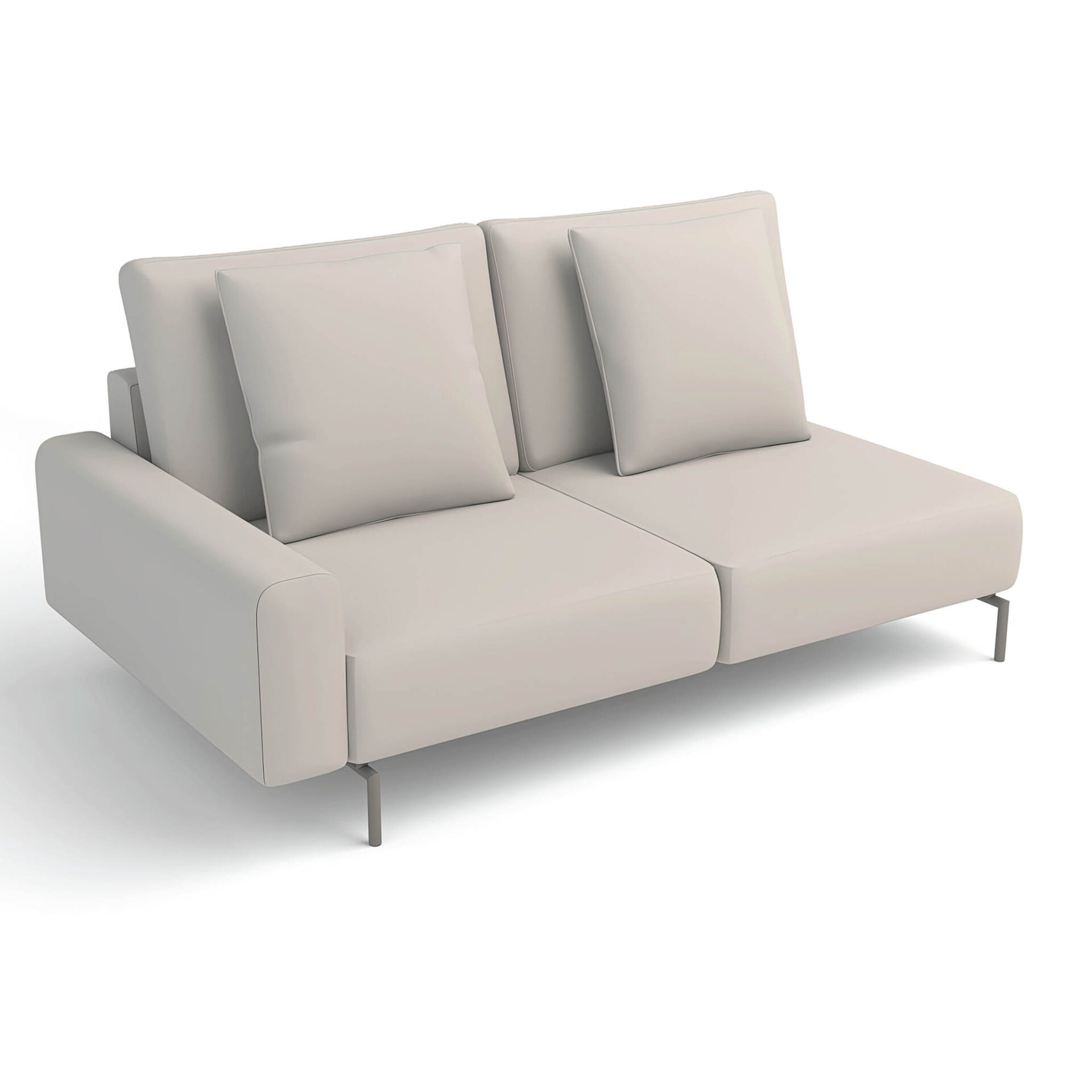De brede zijden van de bank zijn verplaatsbaar. U kunt ze verplaatsen of zelfs verwijderen. Ze worden dan poefs – een extra zitplaats of comfortabele voetensteunen. U kunt elke configuratie maken met de modules van de Acapulco collectie voor elke vorm en formaat Ook in een versie zonder zijkanten is mogelijk. U kunt de opstelling van de elementen afstemmen op uw interieur en gezin.