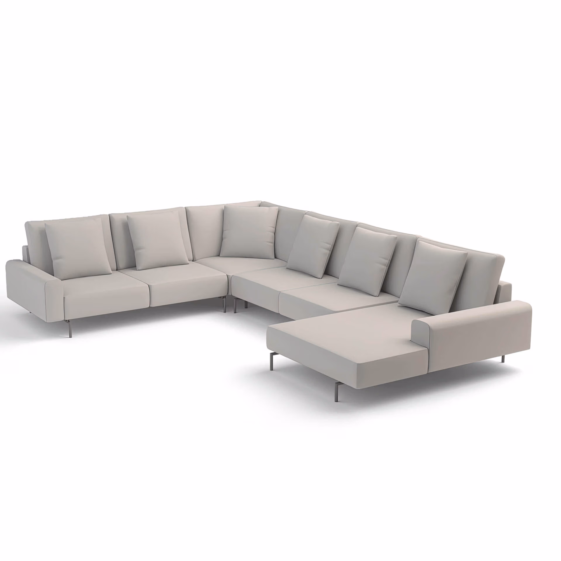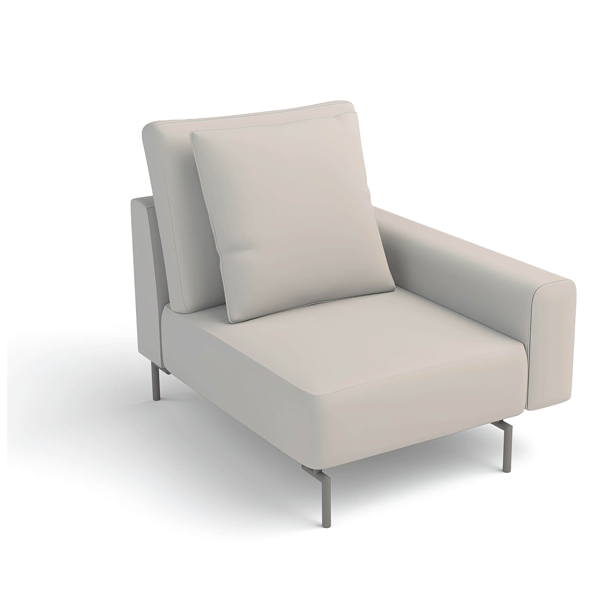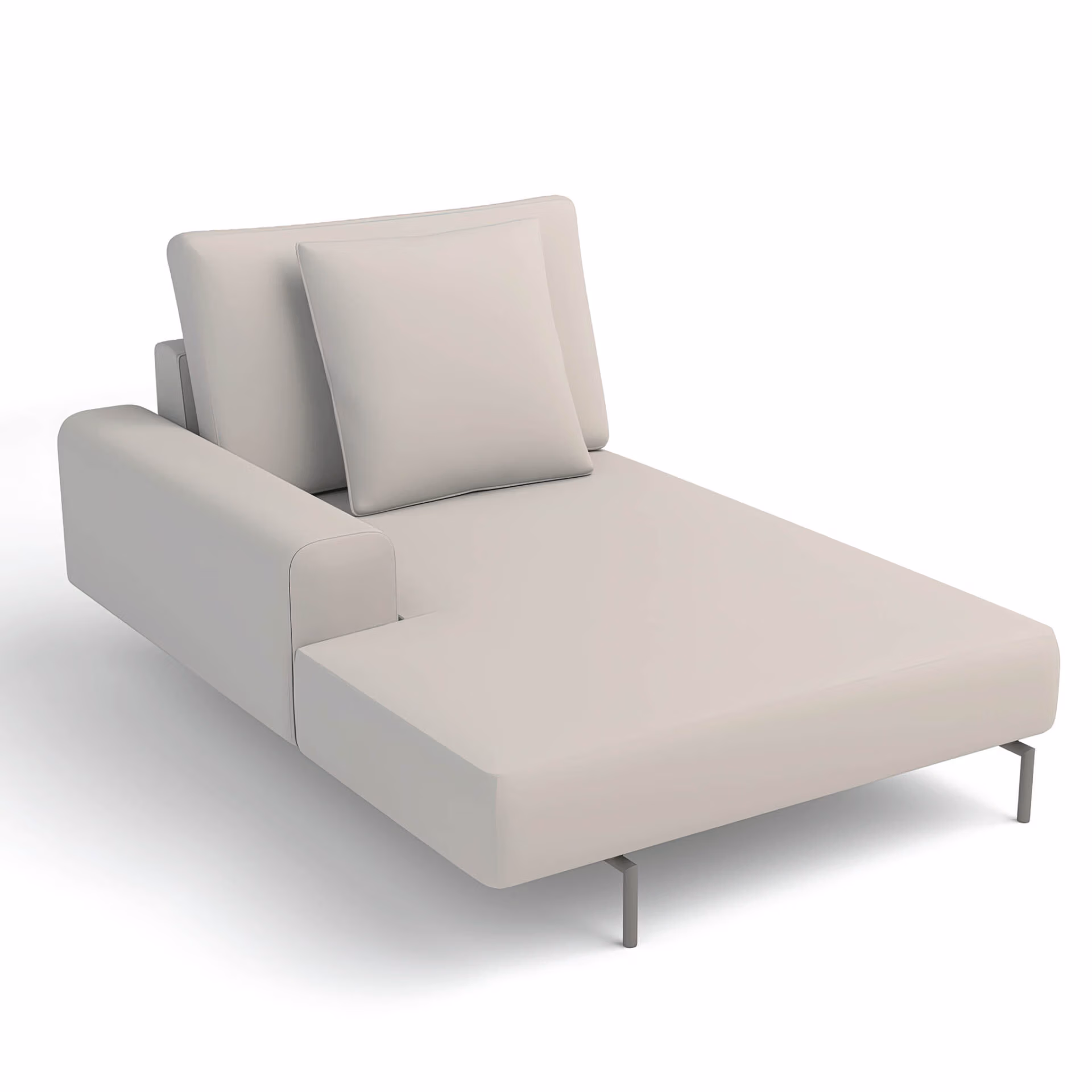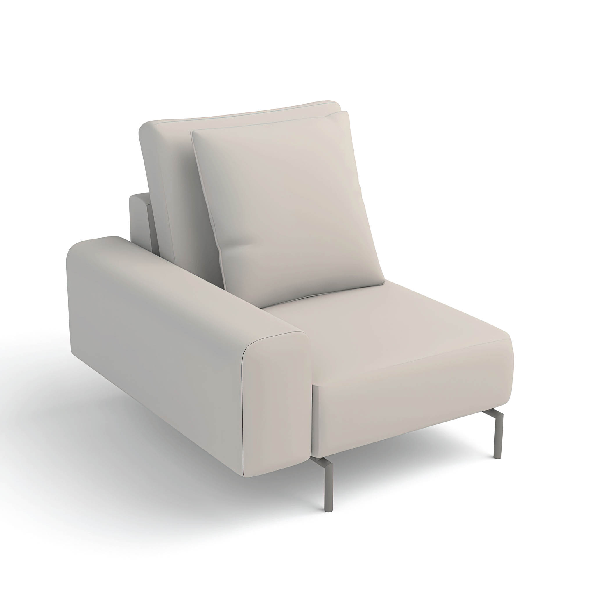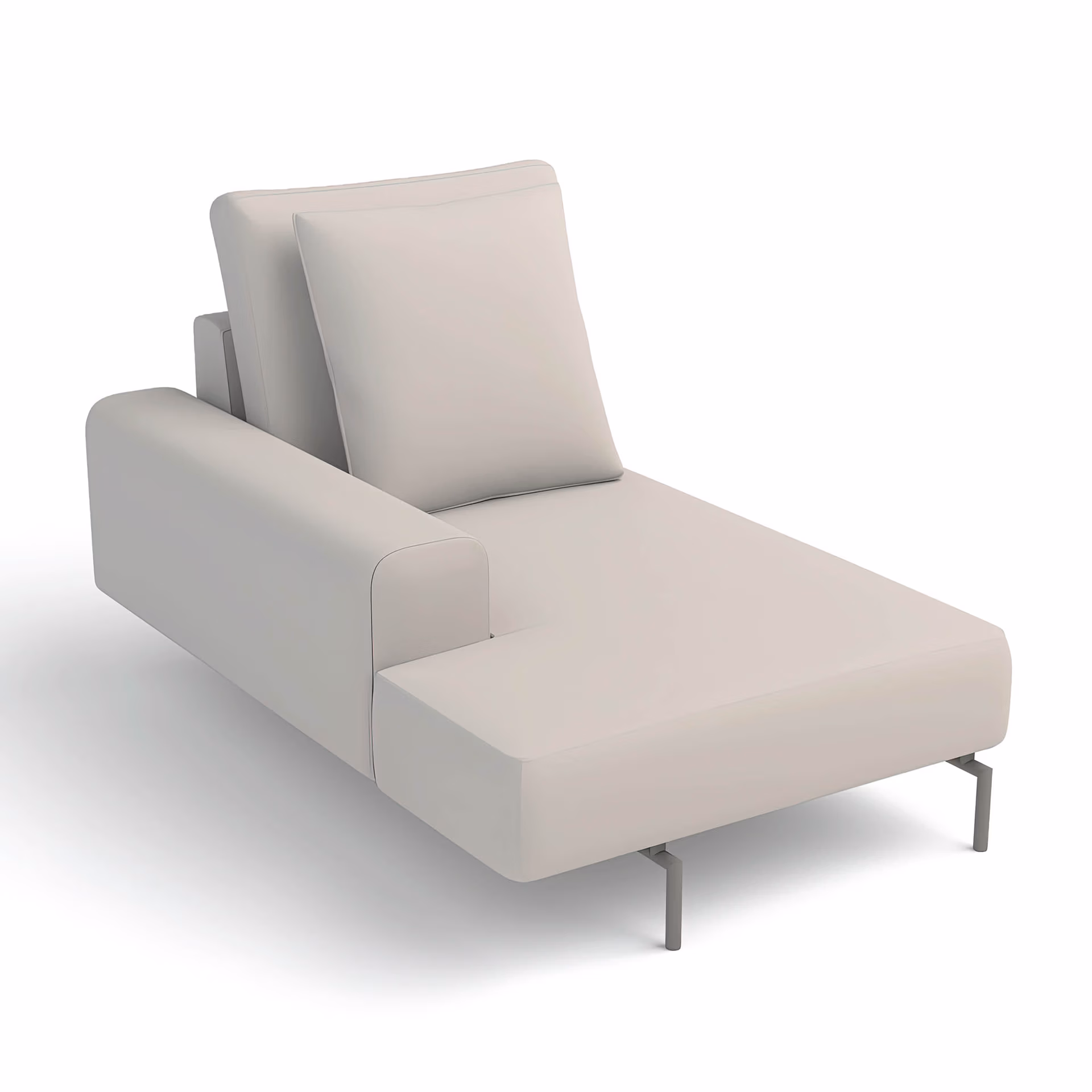 De brede zijden van de bank zijn verplaatsbaar. U kunt ze verplaatsen of zelfs verwijderen. Ze worden dan poefs – een extra zitplaats of comfortabele voetensteunen. U kunt elke configuratie maken met de modules van de Acapulco collectie voor elke vorm en formaat Ook in een versie zonder zijkanten is mogelijk. U kunt de opstelling van de elementen afstemmen op uw interieur en gezin.
