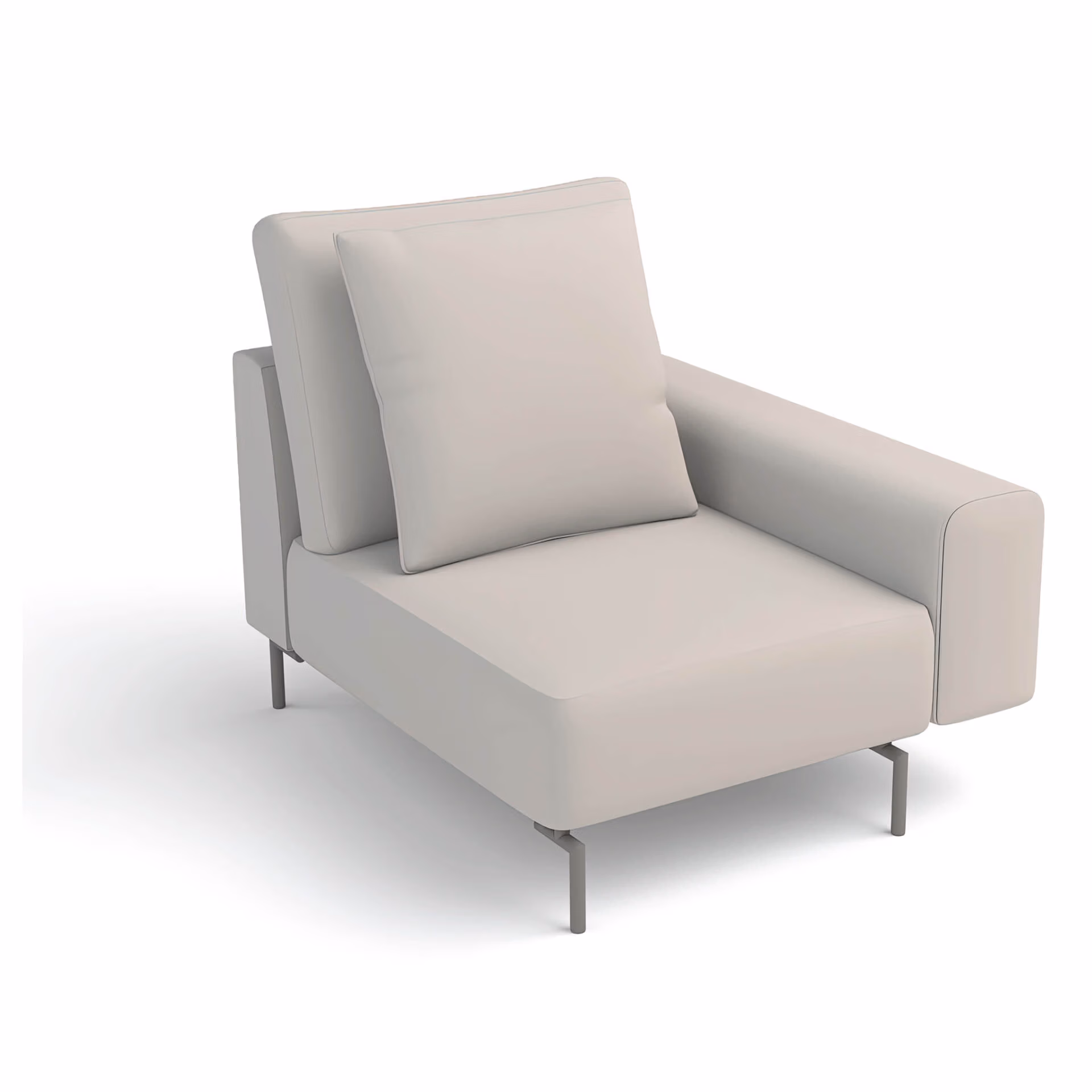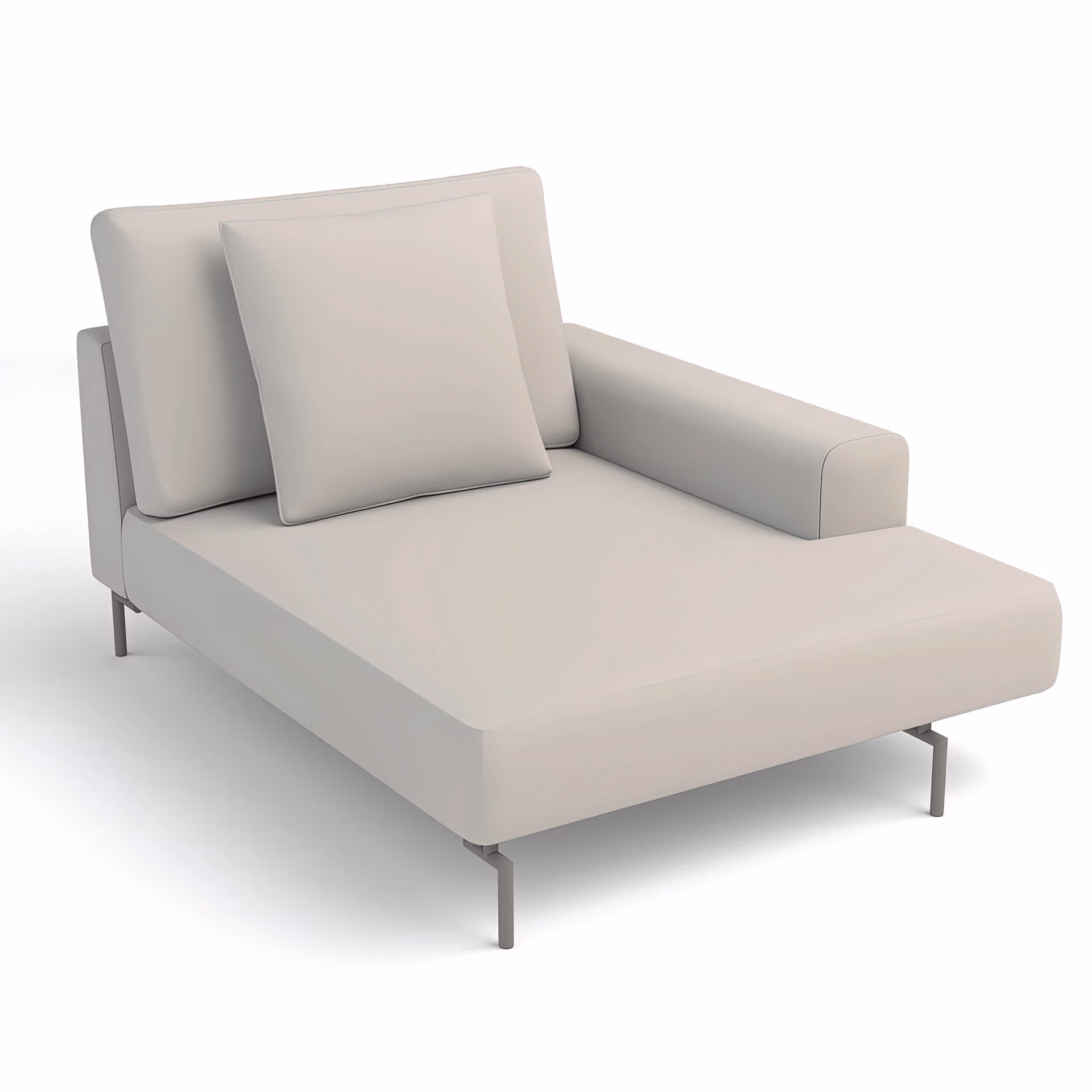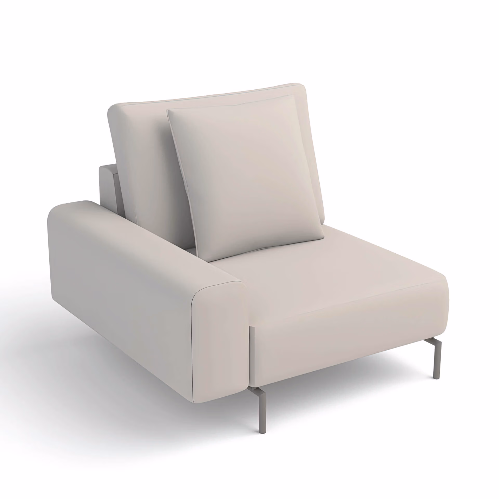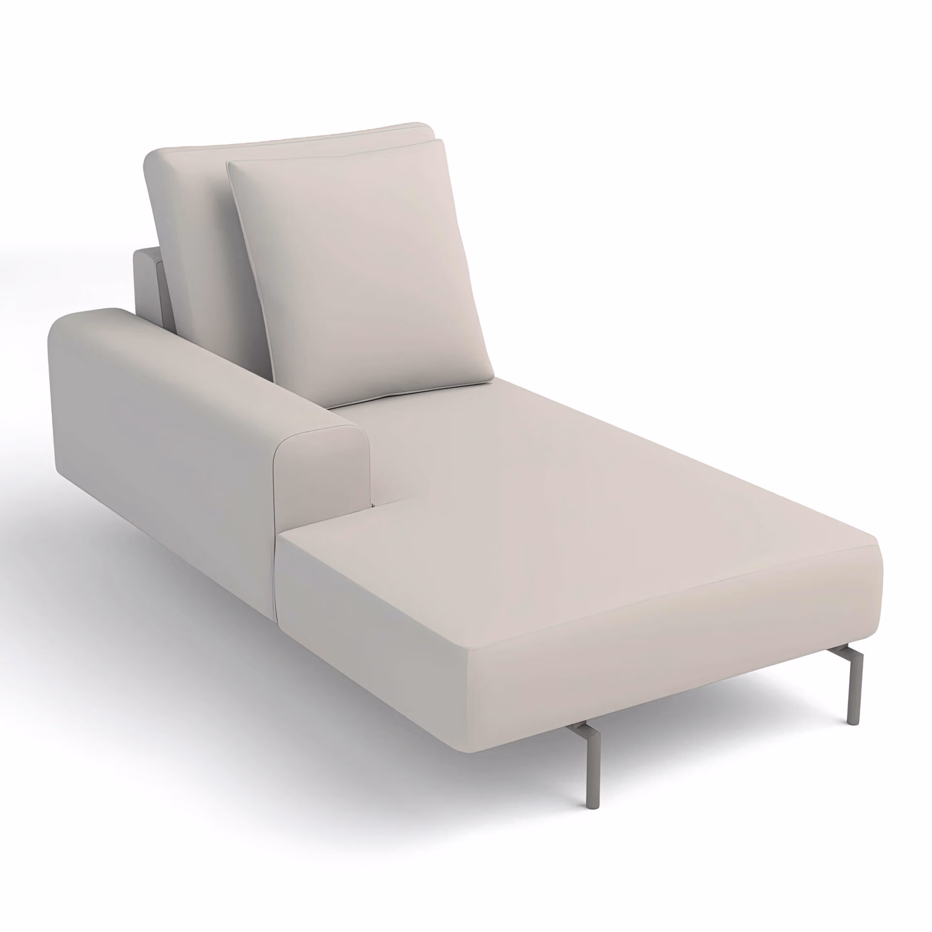 De brede zijden van de bank zijn verplaatsbaar. U kunt ze verplaatsen of zelfs verwijderen. Ze worden dan poefs – een extra zitplaats of comfortabele voetensteunen. U kunt elke configuratie maken met de modules van de Acapulco collectie voor elke vorm en formaat Ook in een versie zonder zijkanten is mogelijk. U kunt de opstelling van de elementen afstemmen op uw interieur en gezin.