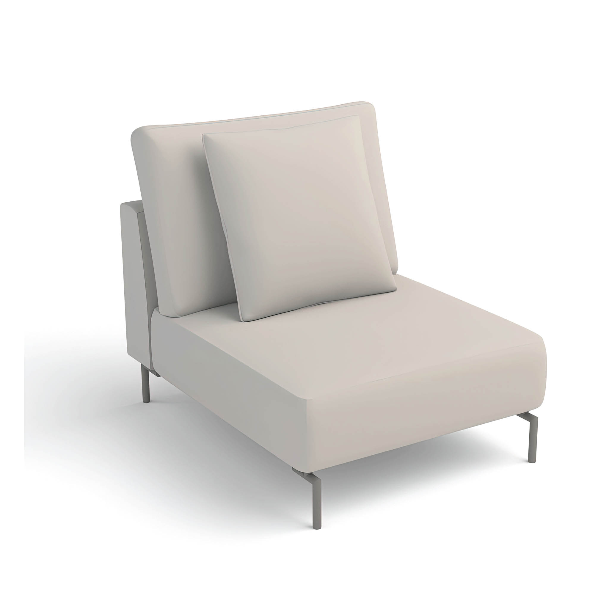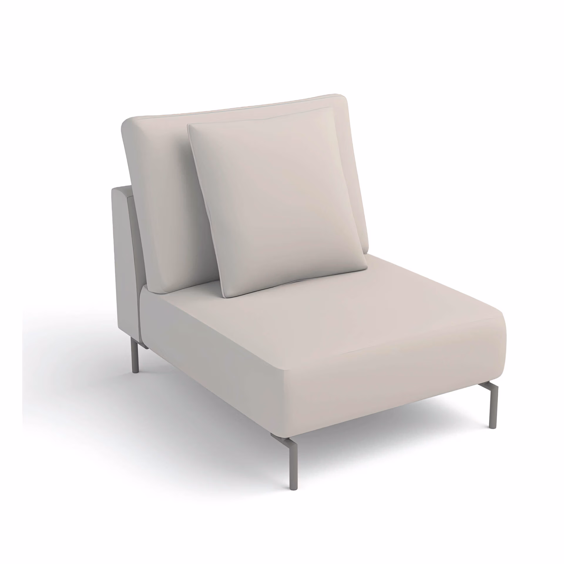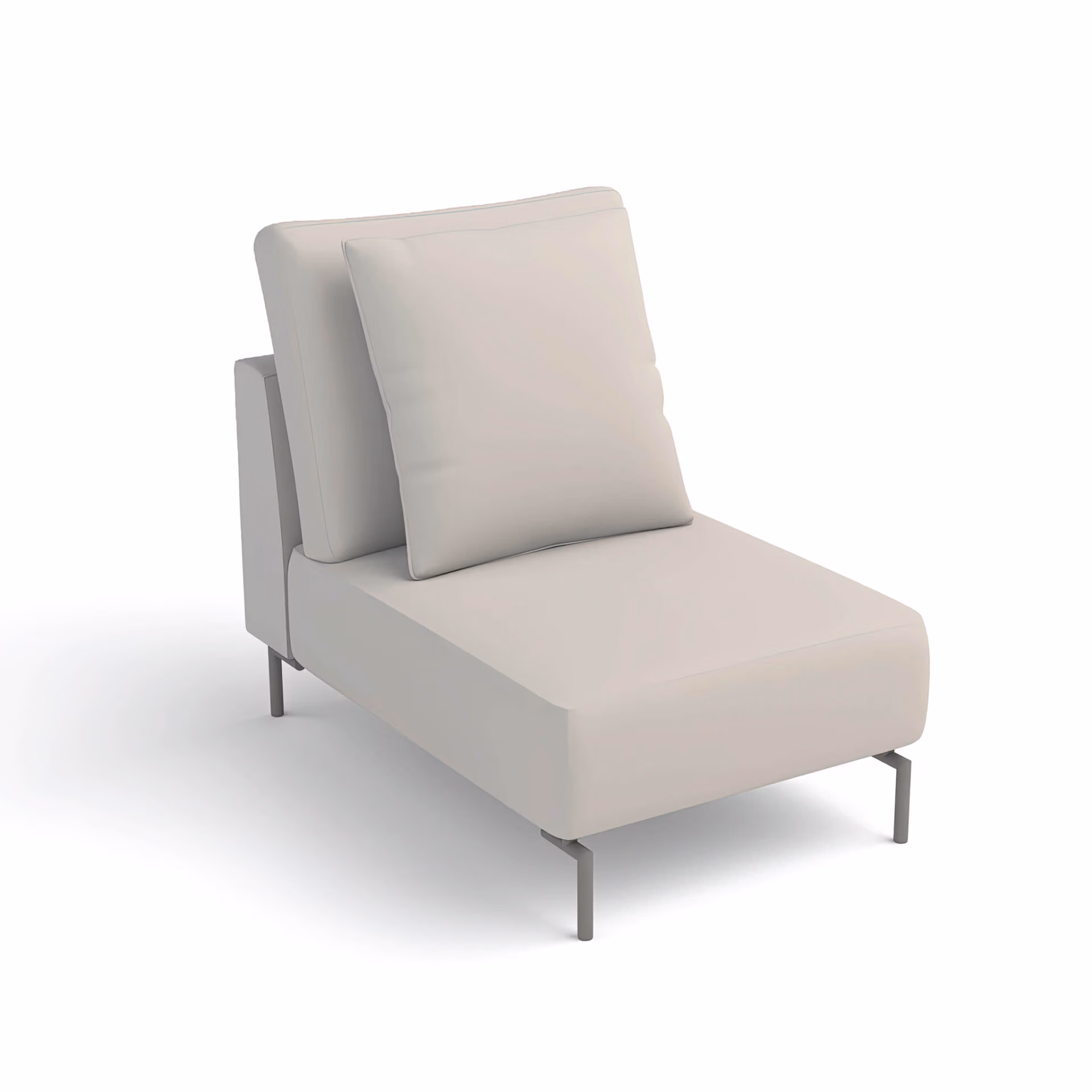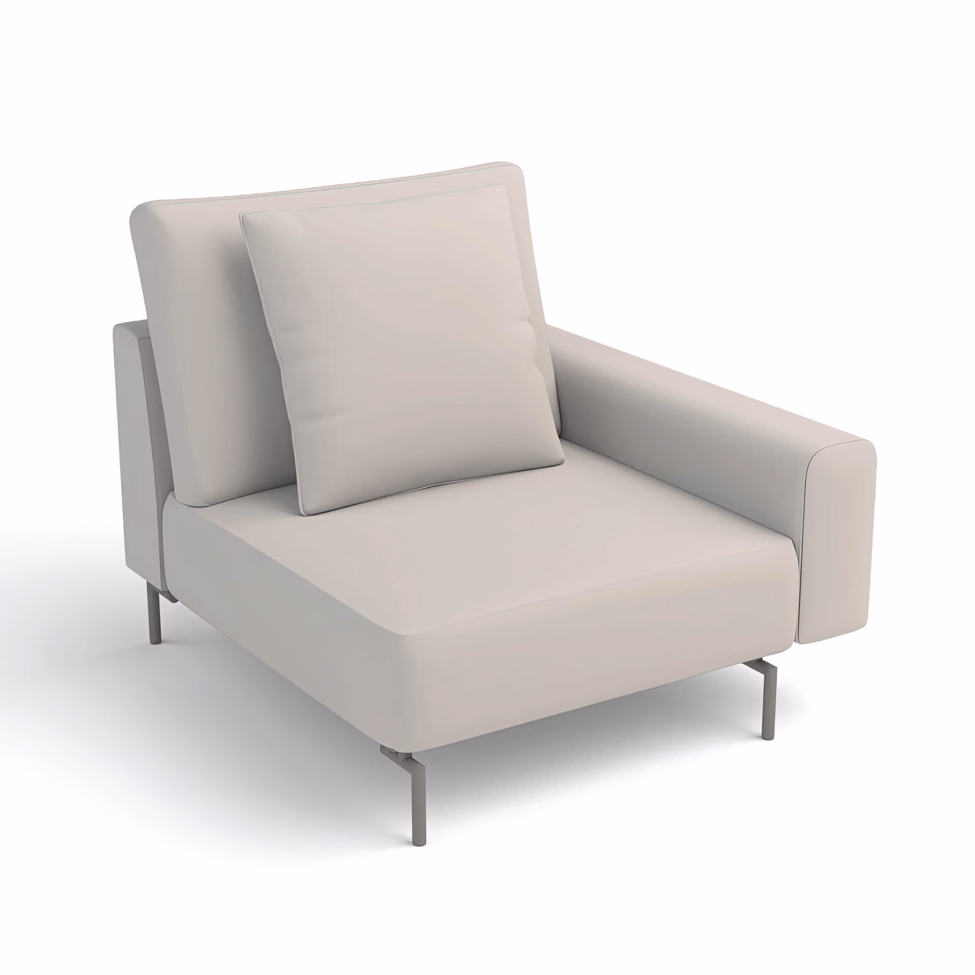 De brede zijden van de bank zijn verplaatsbaar. U kunt ze verplaatsen of zelfs verwijderen. Ze worden dan poefs – een extra zitplaats of comfortabele voetensteunen. U kunt elke configuratie maken met de modules van de Acapulco collectie voor elke vorm en formaat Ook in een versie zonder zijkanten is mogelijk. U kunt de opstelling van de elementen afstemmen op uw interieur en gezin.